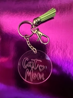 Stay close to your feline friend wherever you go with our Cat Mom Acrylic Keychain. Crafted with love and precision, this charming keychain is a must-have accessory for cat lovers everywhere. Made from durable acrylic, it features a beautifully designed silhouette of a cat and the words "Cat Mom" inscribed in elegant script. Designed to add a touch of style to your keys, bags, or backpacks, this keychain is both functional and fashionable. Its compact size ensures easy portability, allowing you to showcase your love for your fur baby no matter where your adventures take you. Whether you're a proud cat mom yourself or looking for a pawsitively purrfect gift for a fellow cat lover, this keychain is guaranteed to make hearts melt and tails wag. Grab yours today and celebrate the precious bond you share with your beloved feline companion.